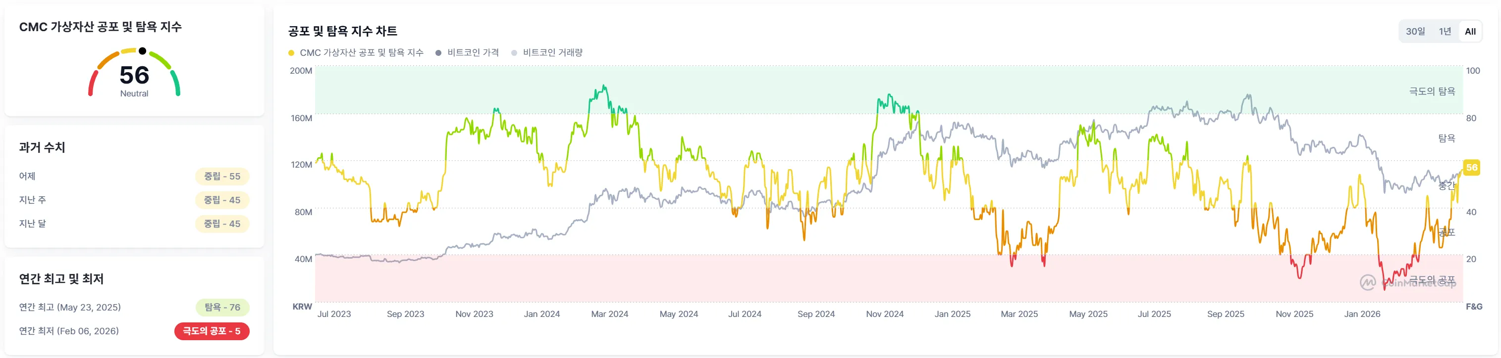 Note: We have changed the data source for our Fear & Greed Index updates from Alternative.me to CoinMarketCap, as we have determined that CoinMarketCap's data more sensitively reflects current market conditions.