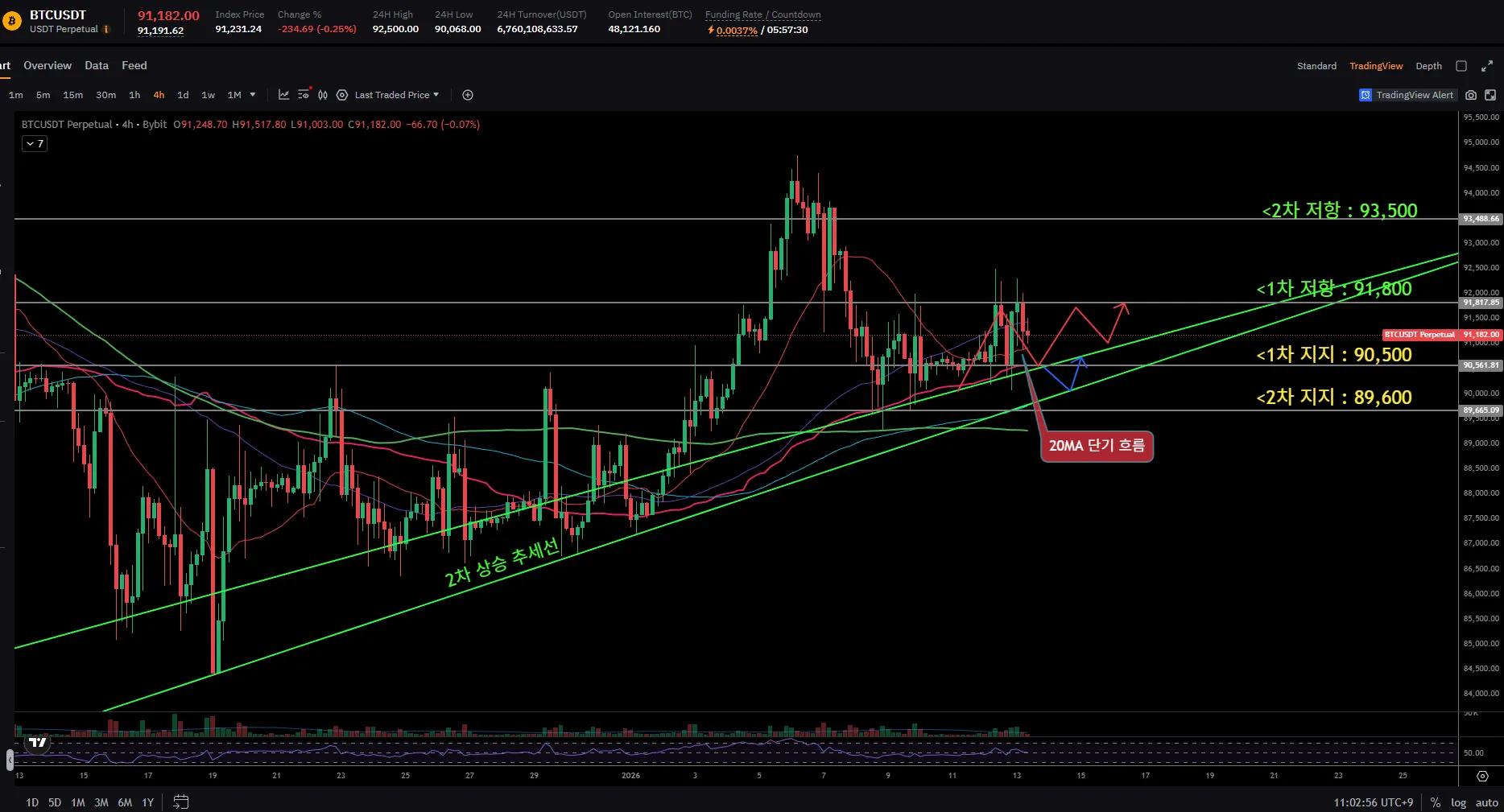 โข 1์ฐจ ์ ํญ 91.8K ๋ํ ์ 92K ๋ฆฌํ ์คํธ ํ๋ฅ ์ด ์ฆ๊ฐํ๋ฉฐ 93.5K ๋จ๊ธฐ ์๋ฐฉ