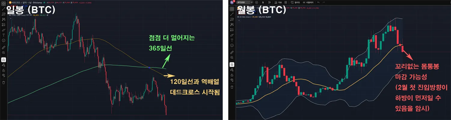 이 글을 쓰는 현재 아직 월봉이 갱신되려면 약 8시간이 남았지만 사실상 이정도면 이제 1월봉은 거진 현위치에서 확정되었다고 보고 글을 작성합니다.