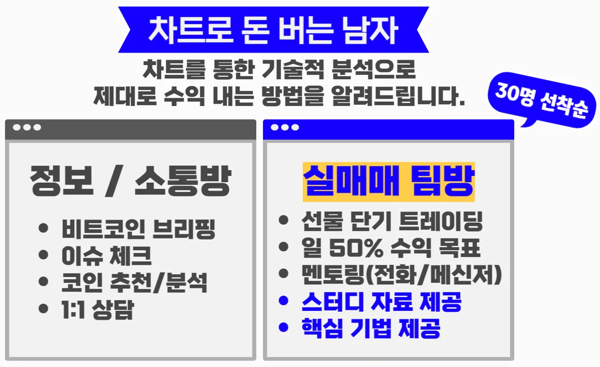 소통방 / 실매매 팀방 / 차트공부 / 투자강의