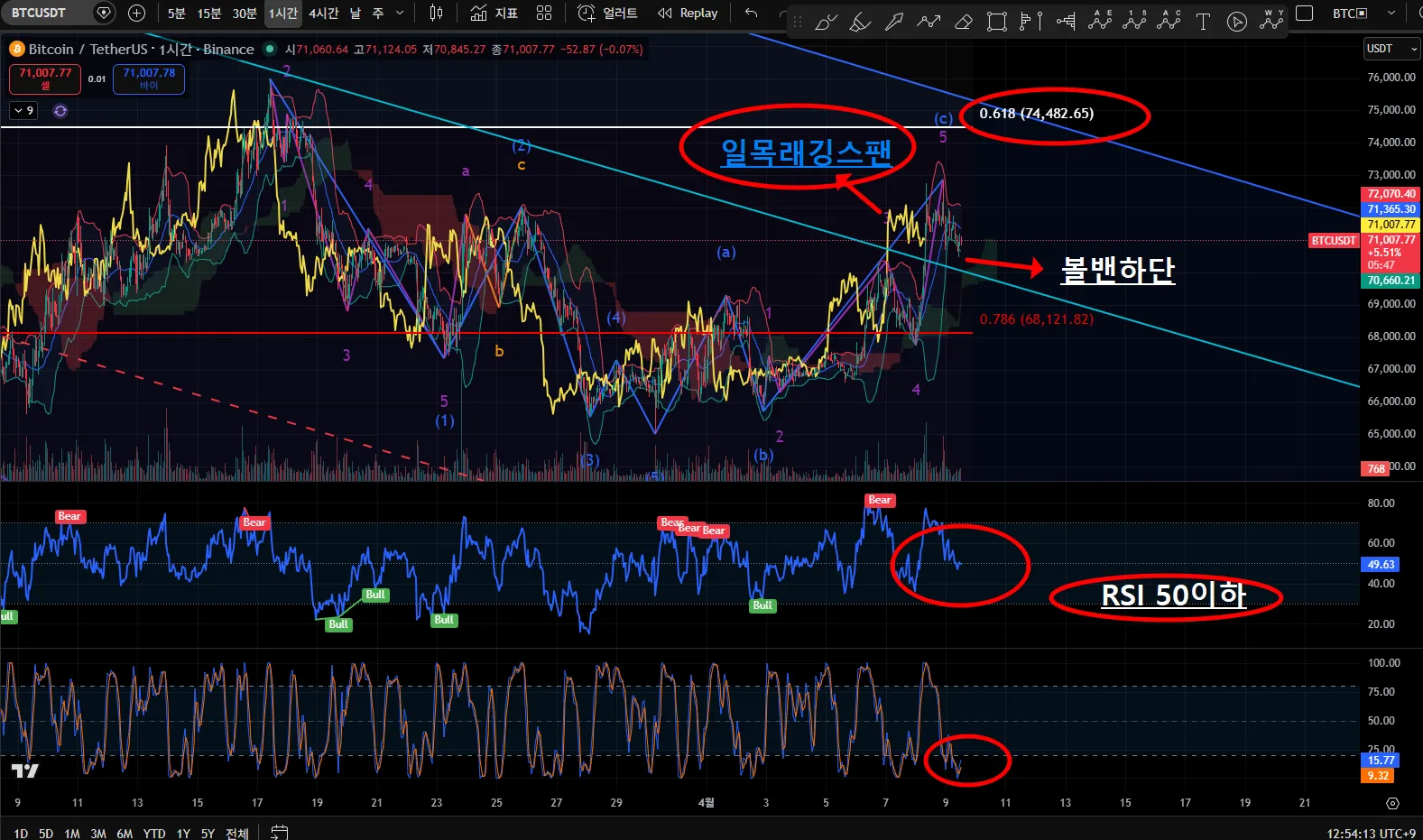 ✅ 비트코인 1시간 차트 (69K중후반 자리에서 반등을??)