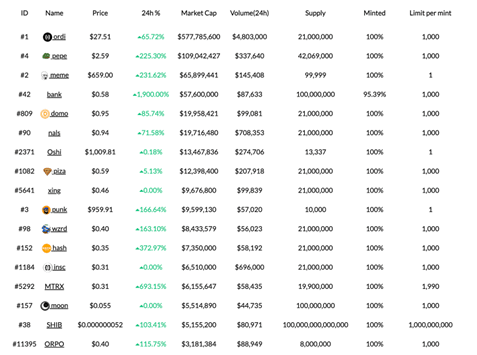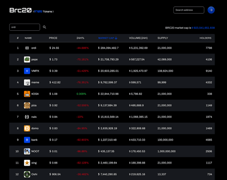 BRC-20 토큰들의 시가 총액은 7.2억 달러를 돌파했으며, 최근 하루 거래량은 2억 달러를 돌파하면서 하루 만에 20배가 넘는 가격 상승을 보이는 밈 토큰들도 나타나기 시작했습니다.