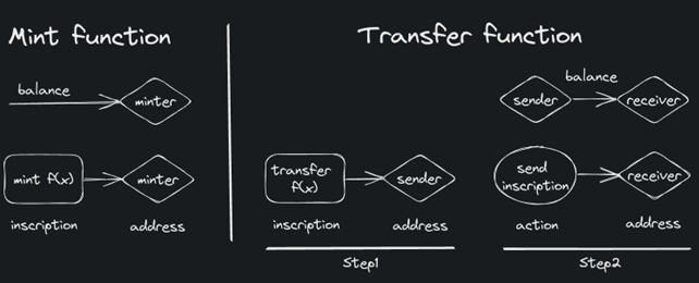 비트코인에 비문(inscription)으로 메모를 남기는 방식을 활용하는 BRC-20은 다음과 같은 최소한의 기능만 가능하기 때문에 현재로서는 사실상 밈(meme)코인과 다를 바가 없습니다.