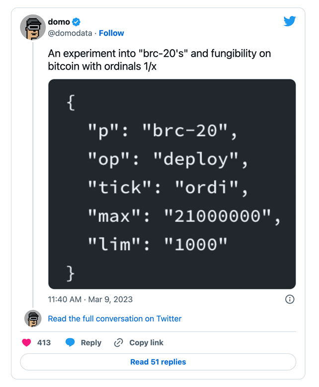 “An experiment into "brc-20's" and fungibility on bitcoin with ordinals 1/x”