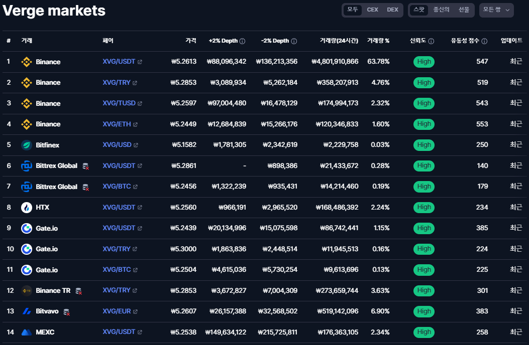 *XVG 코인 거래소 시장분석