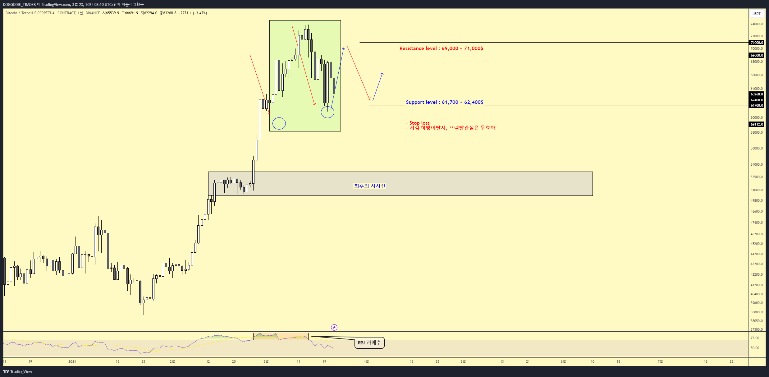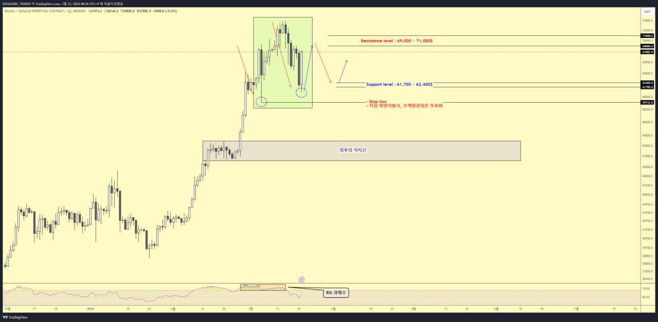 또한, 72,000 ~ 73,000$ 부근부터 왜 월말에 갈수록 조정이 나올 확률이 큰지 설명드린 이유와 직결됩니다