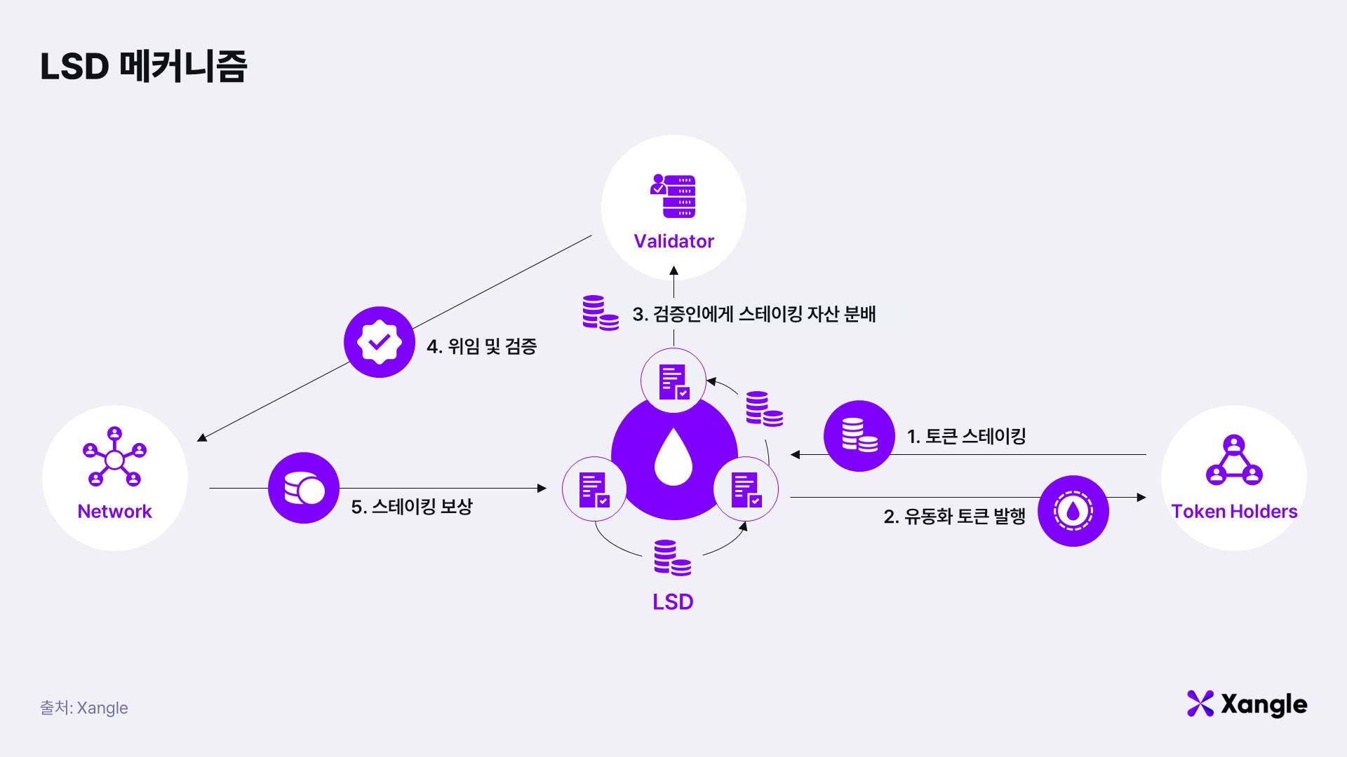스테이킹은 자산을 예치하여 블록체인 생태계에 적극적으로 참여를 하면서 동시에 토큰 보상까지 받을 수 있는 장점이 있다. 하지만 스테이킹을 하는 과정에서 이더리움을 비롯한 대부분의 네트워크들은 언스테이킹까지 일정 기간이 걸린다. 최소 3일에서 많게는 3주까지도 시간이 소요된다. 문제는 언스테이킹이 완료되기 까지의 기간 동안에는 스테이킹한 자산이 보상을 만들지도 못하고 출금도 되지 않는다는 것이다. 이런 상황을 개선하고자 하는 것인 바로 LSD라고 하는 생태계이다. LSD는 스마트컨트랙트 기반으로 자산을 받아 대신 스테이킹을 해주면서, 유동화 토큰을 발행해준다. 이더리움 생태계에서 가장 큰 LSD를 운용하는 Lido의 경우에는 ETH을 스테이킹하면 stETH토큰을 받을 수 있다. 이런 stETH토큰은 유동성을 만들어서 곧바로 거래가 되기 때문에 이더리움에 직접 스테이킹 하는 것보다 유동성 측면에서 효율적이다.
