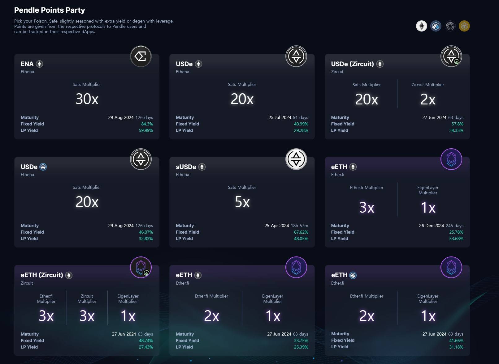 리스테이킹이 괄목할만한 성장을 이끌 수 있었던 가장 큰 이유는 펜들 파이낸스가 리스테이킹 프로토콜 이더파이(eETH)를 지원하면서 이다. 펜들에서 이자 토큰을 구매하면 아이겐레이어와 이더파이의 레버리지 포인트 파밍이 가능해지자, 리스테이킹 생태계에 엄청난 자금이 유입되었다. 펜들 파이낸스와 관련한 자세한 내용은 하기에서 설명하겠다.