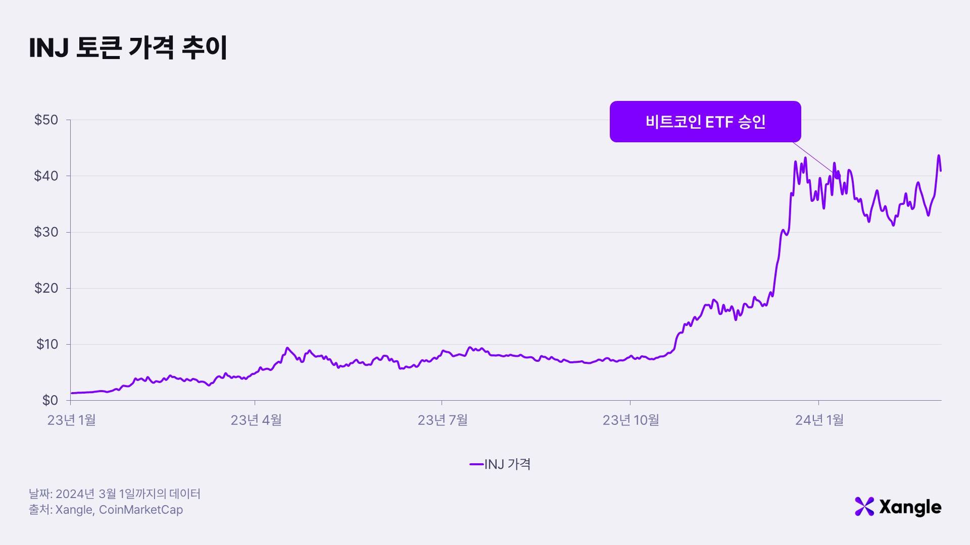 비트코인 현물 ETF 승인으로 인해 가상자산 시장이 크게 주목 받고 있다. 비트코인 뿐만 아니라 레이어 1 코인들도 다시금 주목을 받고 있는데, 그 가운데 인젝티브는 지난 1년 동안 5 배 이상 토큰 가격 상승을 기록하며 주목 받았다.