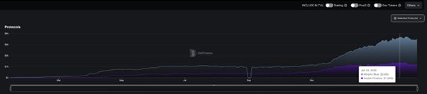 2024년 11월 USDa가 출시됐을 때 총 락업 예치금(TVL) 규모는 2,500만 달러에 불과했다. 하지만 출시 1개월 만에 TVL은 5억 달러까지 치솟아 1개월 사이 TVL 증가폭은 1,900%에 달했다. USDe의 경우 2023년 12월 출시 당시 TVL은 700만 달러였으며, 출시 후 1개월 내 TVL 증가폭은 1,770%를 기록했다.