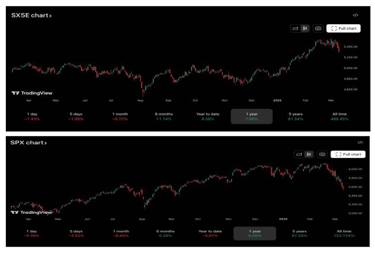 트럼프 전 대통령이 우크라이나에 대한 전략을 재조정하며 사실상 유럽을 “배신”한 이후, 글로벌 경제 지형에 일부 작은 변화가 나타나고 있다. 트럼프의 혼란스러운 정책 환경은 미국 증시의 변동성을 키우며, 고금리 시대의 강한 상승 흐름을 방해하고 있다. 반면, 침체 국면에 있던 유럽 경제는 급격한 국방 수요 증가로 인해 새로운 활력을 얻으며, 이는 유럽 증시와 유로화의 강세로 이어지고 있다.