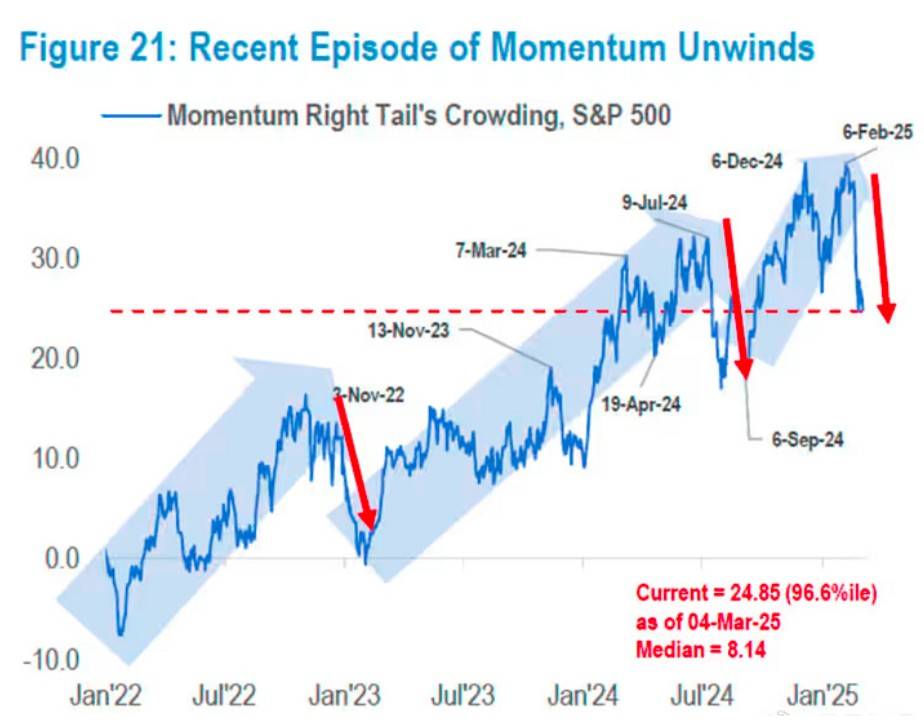 과거 모멘텀 주도 하락장의 패턴을 분석한 결과, 현재 조정 국면은 역사적으로 주요 매도세와 밀접하게 일치하는 흐름을 보이고 있다.
