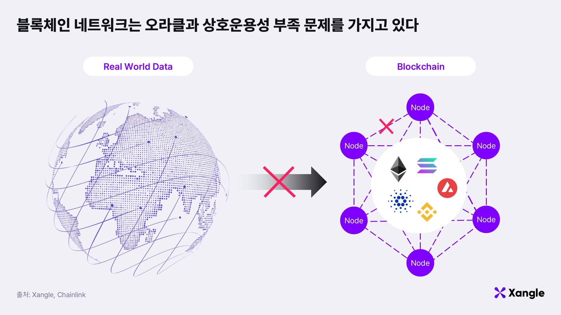 데이터를 탈중앙화된 형태로 저장하는 블록체인 네트워크는 무결성, 투명성, 검열 저항성과 같은 장점을 가진다. 그러나 블록체인 네트워크는 외부 환경과 단절되어 있다는 단점이 존재한다. 블록체인에 기록된 데이터는 자유롭게 활용할 수 있지만, 외부 세계의 데이터를 직접 가져오거나 다른 블록체인 네트워크와 원활하게 상호 작용하는 것은 쉽지 않다. 즉, 블록체인에 없는 데이터를 신뢰할 수 있는 방식으로 가져오는 것이 어렵고, 서로 다른 블록체인 네트워크가 독립적으로 운영되면서 데이터와 자원의 파편화 문제가 발생하게 된다. 블록체인 네트워크가 외부 데이터와 단절되는 현상은 오라클 문제라고 불리며, 블록체인 네트워크 간의 파편화는 상호운용성 문제라고 부른다.