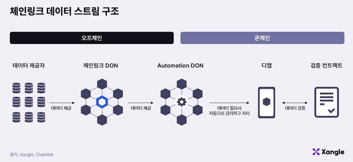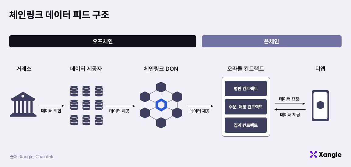 체인링크의 데이터 피드는 탈중앙화 오라클 네트워크(Decentralized Oracle Network, 이하 DON)를 통해 신뢰할 수 있는 외부 데이터를 블록체인에 제공하는 역할을 한다. 블록체인은 기본적으로 외부 데이터를 직접 가져올 수 없기 때문에, 체인링크는 스마트 컨트랙트가 필요로 하는 데이터를 안전하게 수집하고 검증한 후 온체인에서 활용할 수 있도록 지원한다.