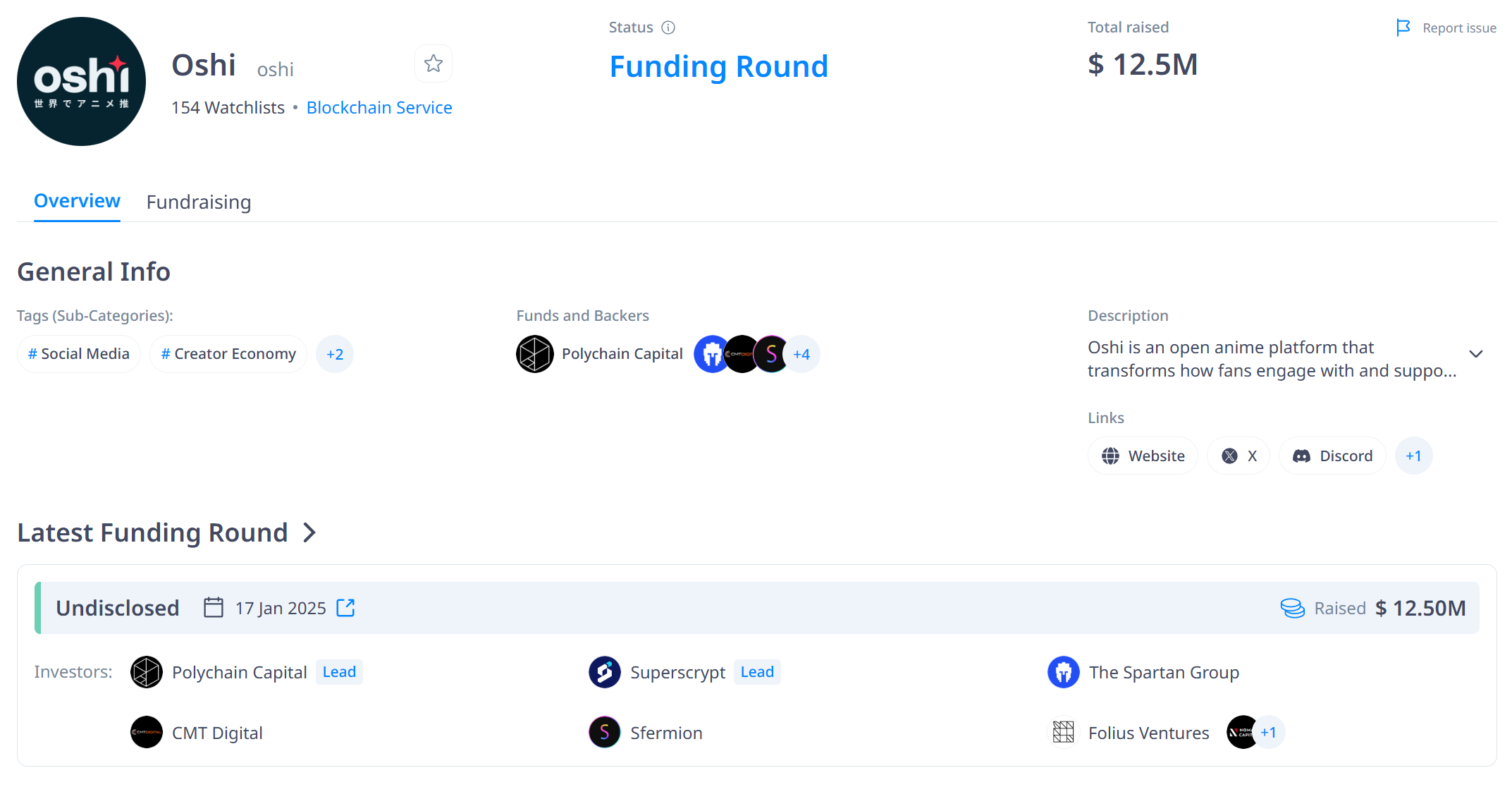 [Comments] 일본과 미국이 합작하여 만든 Oshi는 Web3 애니메이션 생태계를 구축하겠다는 목표로 유명 VC들에게 12.5M 규모 투자를 받았다. 크게 팬, 브랜드, 창작자 3가지로 볼 수 있는데 팬은 좋아하는 애니메이션을 초기에 지원, 브랜드는 제품을 공동으로 제작하고 글로벌 출시, 창작자들은 팬과 직접적인 관계를 구축하고 IP를 투명하게 사용하는 방식으로 역할이 나뉜다. Oshi가 애니메이션 산업의 구조와 수익 문제를 블록체인으로 투명하게 공개하여 해결한다는 문제의식과 방식에는 공감이 가지만 대다수 애니메이션들이 실패하는 경우, 손해를 누가 감당하는지에 대한 부분을 생각해보면 결국 구조 상 애니 제작을 위해 투자하는 팬들이 감당해야 된다고 보기 때문에 무조건적으로 투자에 참여하는 경우 큰 리스크를 감당해야 된다. 자체 토큰 발행 가능성은 매우 높은게 GATE2라는 특별 엠블럼을 구매 시 100 포인트와 각종 얼리엑세스 혜택을 받을 수 있기 때문에 대략 마감까지 30일이 남은 상태라 5달러를 지불해서 참여해두면 좋을 것 같다.