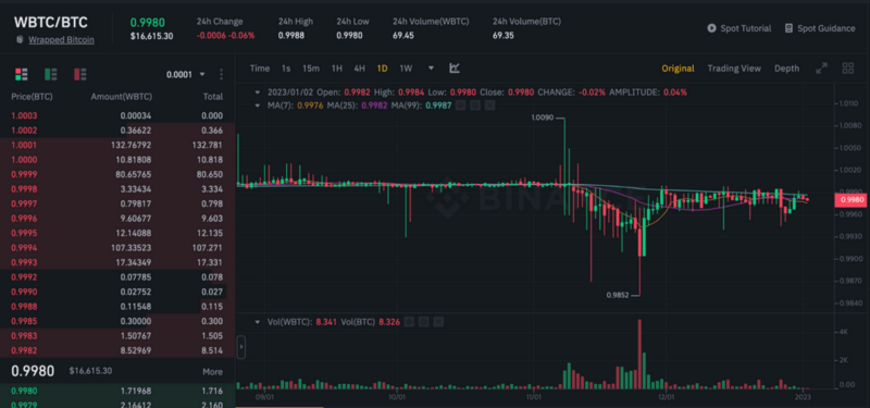 즉, 개인 지갑에 보관 중이라고 하더라도 비트코인 지갑에 보관 중인 BTC와 이더리움 지갑에 보관 중인 WBTC는 엄연히 다른 존재라는 것을 모두가 절실하게 깨닫기 시작하며 WBTC에서의 탈출 러시가 이어졌고 BTC : WBTC = 1 : 1로 잘 유지되던 페깅이 급격하게 깨지는 현상이 나타나기도 했습니다.