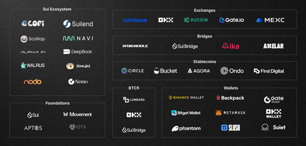 · 통합 신원인증 레이어: 영지식 증명(ZK) 기술 기반의 월러스(Walrus) 및 암호화 씰(Seal) 권한 등을 통해 일회성 KYC/AML 인증을 지원한다.