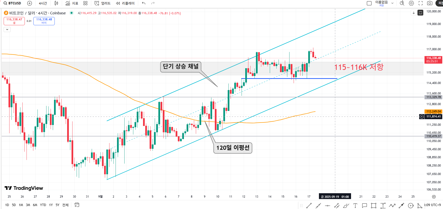 - 9월 15일 = 비트코인 116K 돌파 / 약 5% 상승