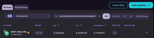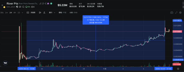 리버 포인트는 ERC-20 기반 토큰으로, 탈중앙화 거래소(DEX)에서 직접 거래할 수 있다. 2025년 9월 22일 ‘다이내믹 에어드롭 전환’과 TGE가 동시에 시작된 이후 14일간, DEX에서 리버 포인트 가격은 0.001달러에서 최고 0.014달러까지 약 14배 상승했다.