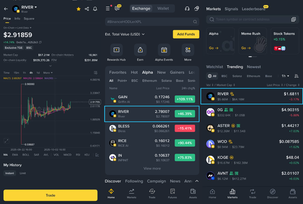 거래 데이터를 보자면 리버는 상장 후 24시간 만에 현물 거래량 1억 5천만 달러를 돌파했고, 보유 지갑 주소 수는 2만 8천 개에 달했다. 또한 바이낸스 알파 메인 페이지에서 3일 연속 거래량 2위에 오르며, 새로운 TGE 모델의 실효성을 입증했다.