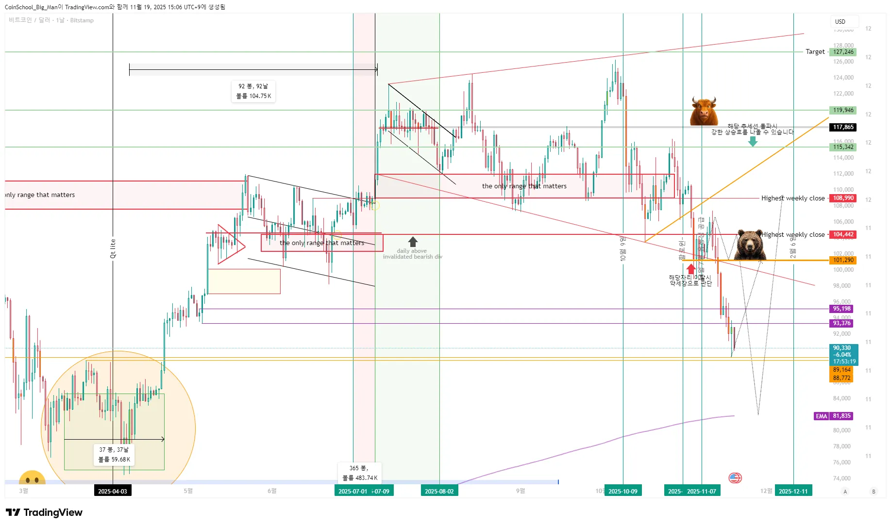 주봉 60선 깨지고 91K까지 쓸어내리면서 다들 입 모여서 시즌 종료 외치는 구간