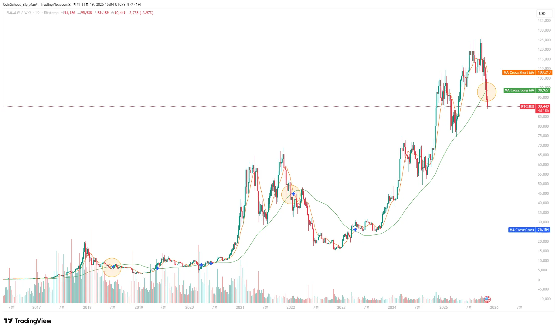→ 과거 사이클에서 보통 하락장 시작 구간에서만 나왔던 시그널