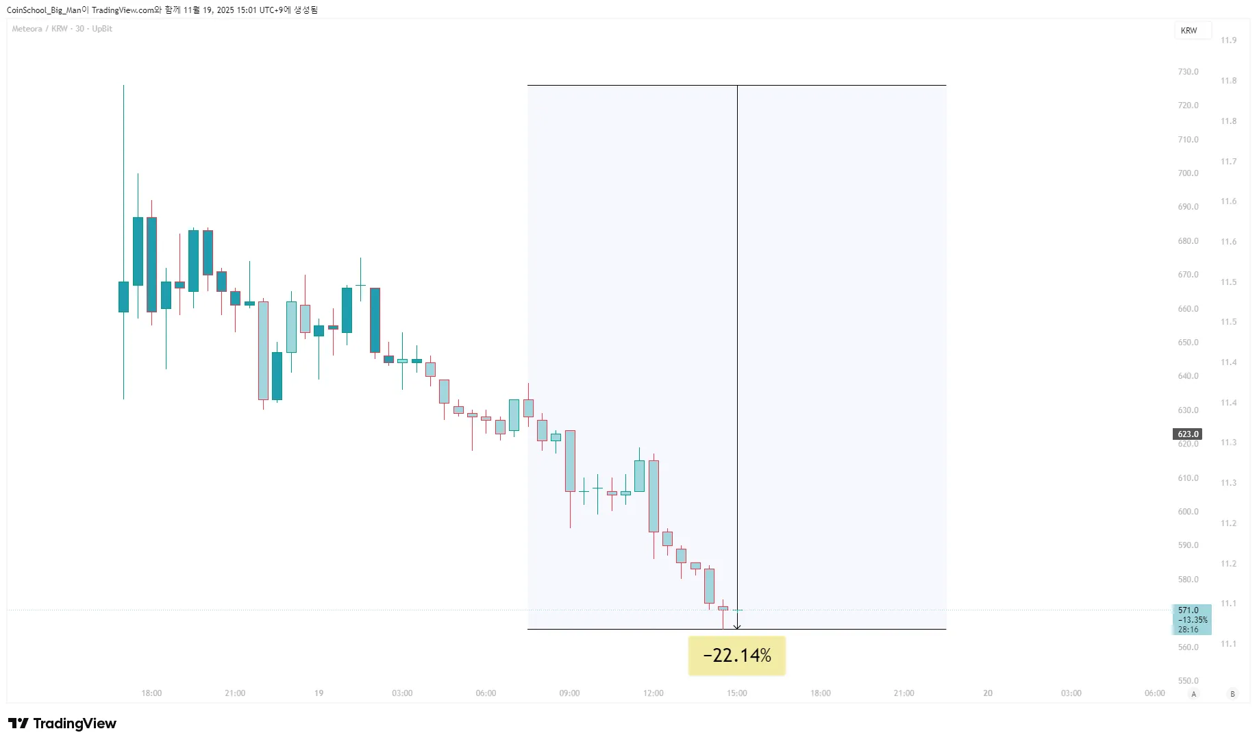 최근 몇 일 동안 15퍼 이상 직선 하락