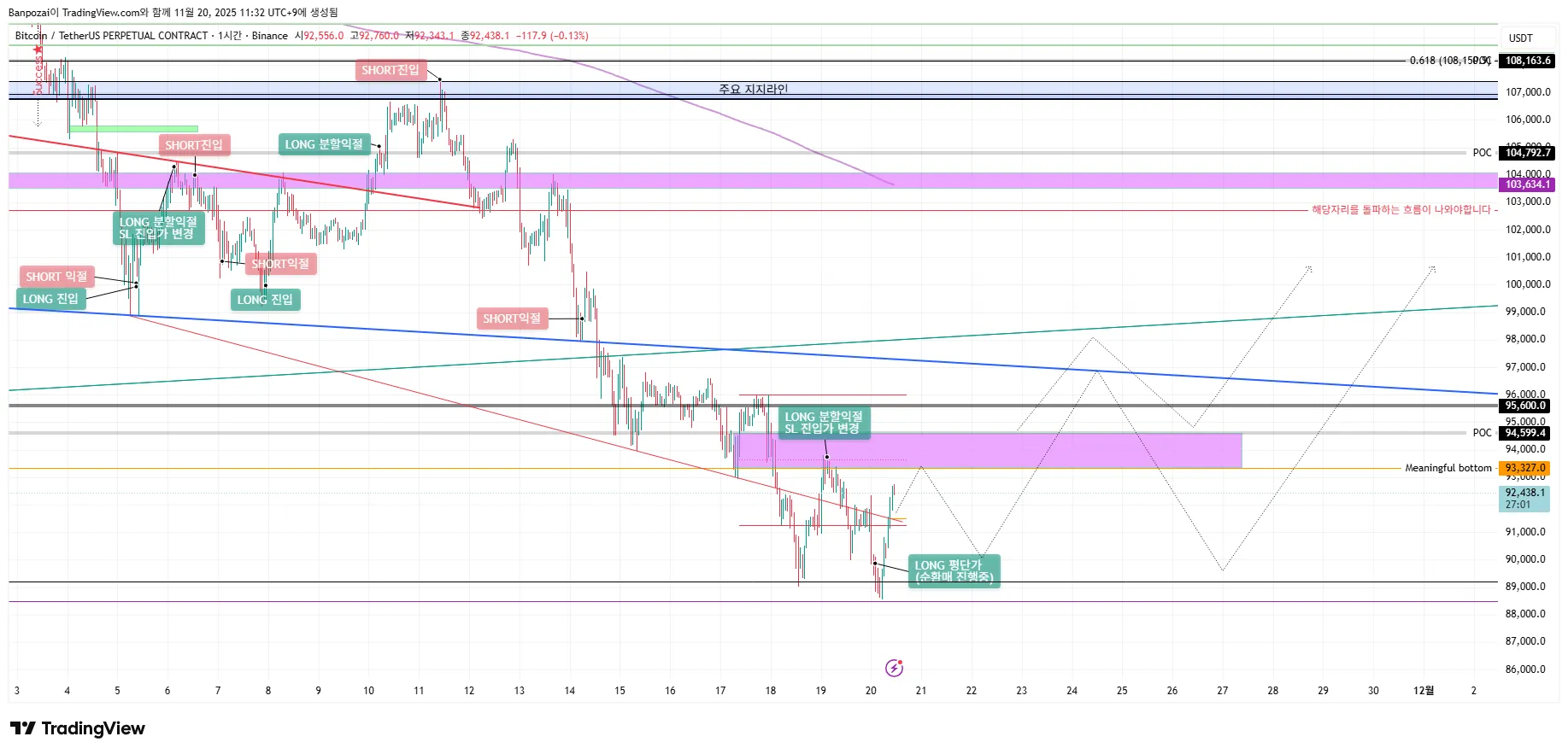 상승과 하락 모든 관점을 동시에 보면서 원하는 목표가 또는 손절가 왔을때 대응하는것이