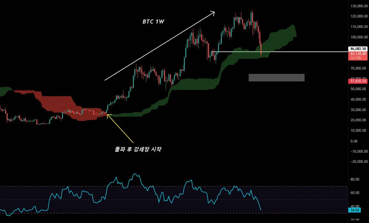 이 구간은 단순한 지지가 아니라 중장기 추세의 마지노선 역할을 해온 지지 구간입니다.