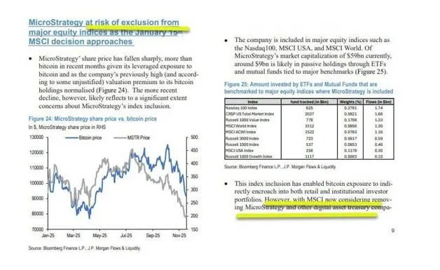 JP 모건에서는 기다렸다는 듯, 스트레티지가 주요 주식 지수에서 제외될 위험한 존재라고 열심히 홍보하고 있습니다.