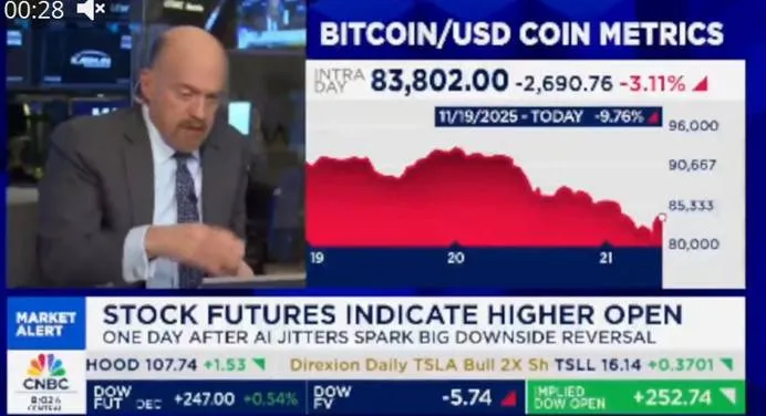 불과 3주 전까지만 해도, 코인이 미래다 불장이 코앞이다 라고 외치던 짐 크레이머는