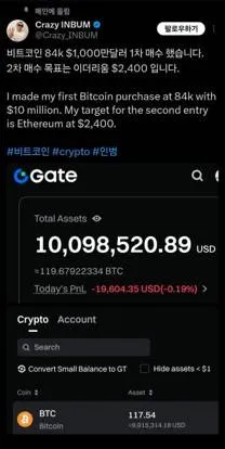 그리고 최근 국적을 바꾼것으로 알려져 있는 인범님은 84K를 비트코인 매수 단가로 잡은듯 합니다.
