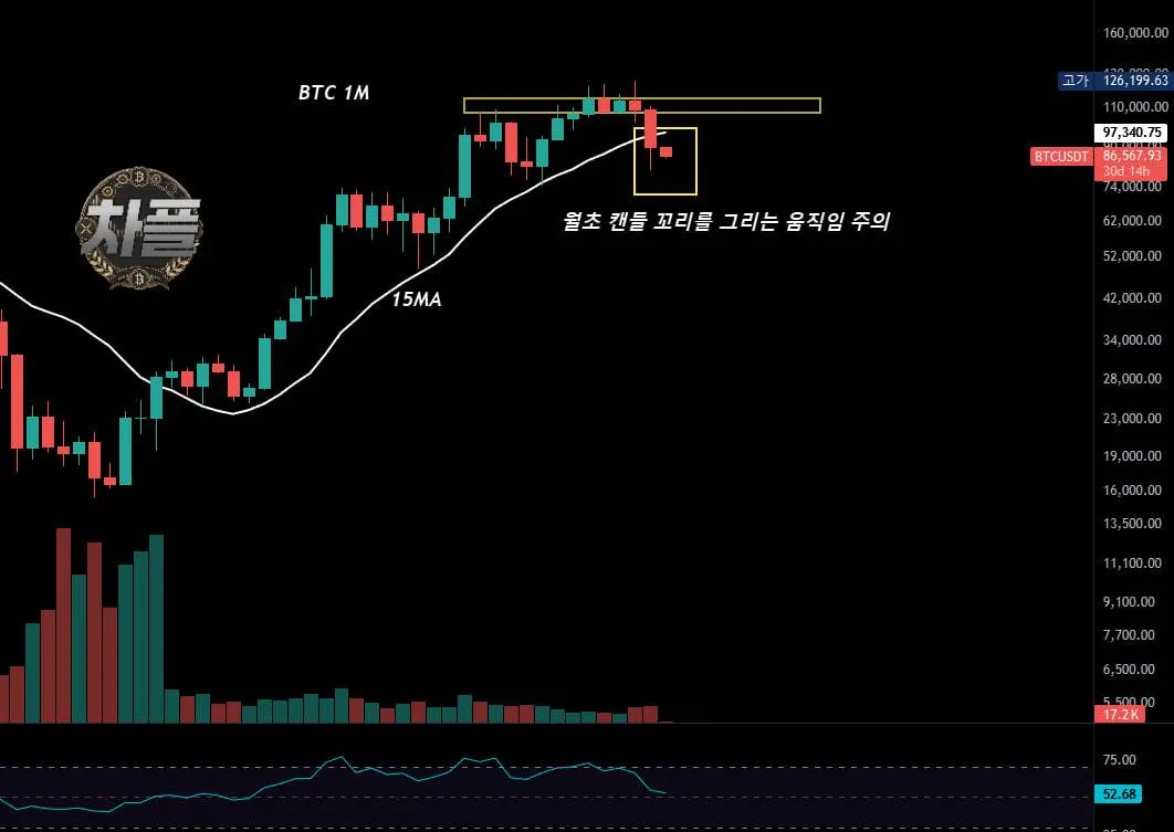 [차플]비트코인 전망 - "비트코인 월봉 붕괴…이번 주 반드시 알아야 할 포인트"