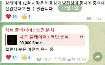 주말 전 93k 숏 포지션을 진입했는데요, 해당 포지션은 텔레그램 채널에서 공유를 드렸습니다.
