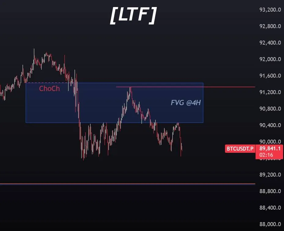 HTF에서 FVG 리밸런싱 때 숏 진입 완료