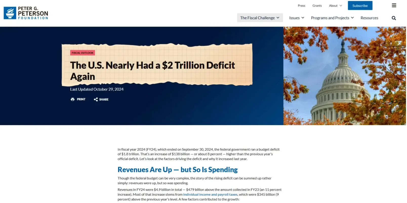 연간 재정적자 규모는 대략 2조 달러 수준