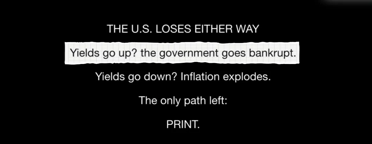 위 사진은 미국은 금리를 올려도 망하고, 내려도 망한다. 결국 남은 길은 돈을 찍어낼 수 있다