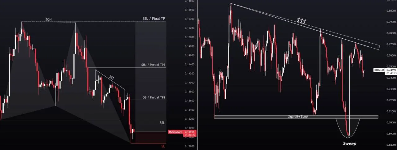 도지코인 (DOGE) ICT 타점 , 모두가 관심이 없어진 코인.