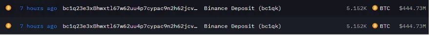 정말 오랜만에 대규모 비트코인이 실제 거래 목적으로 거래소(바이낸스)에 입금되었습니다. 해당 지갑의 움직임은 단순 내부 이동이 아닌, 실제 매도 트랜잭션으로 판단됩니다.