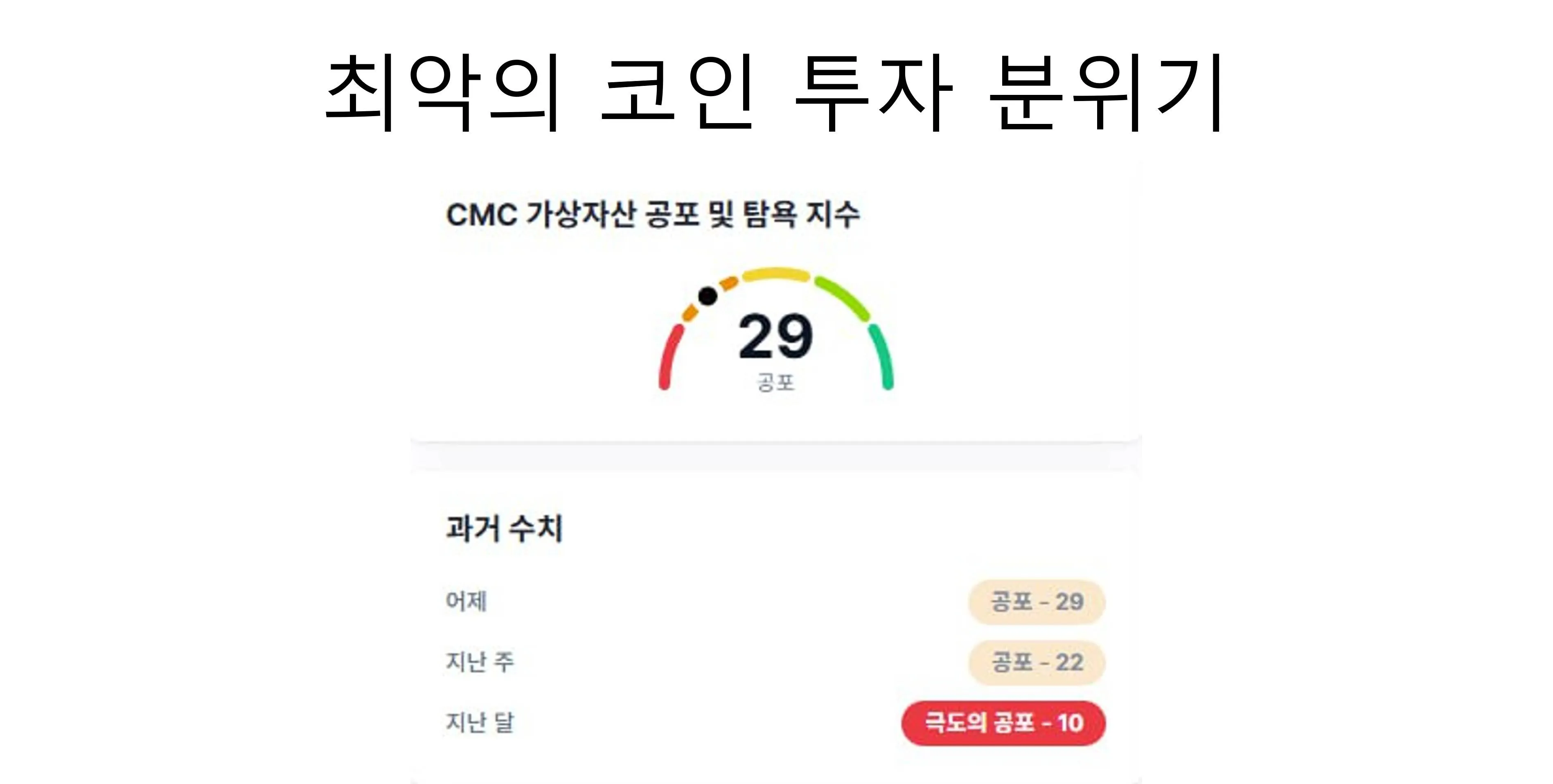 알트코인이야 백번 양보하더라도, 비트코인 마저 나락으로 가면서 코인 투자자들의 심리가 역대급으로 위축되어 있습니다.