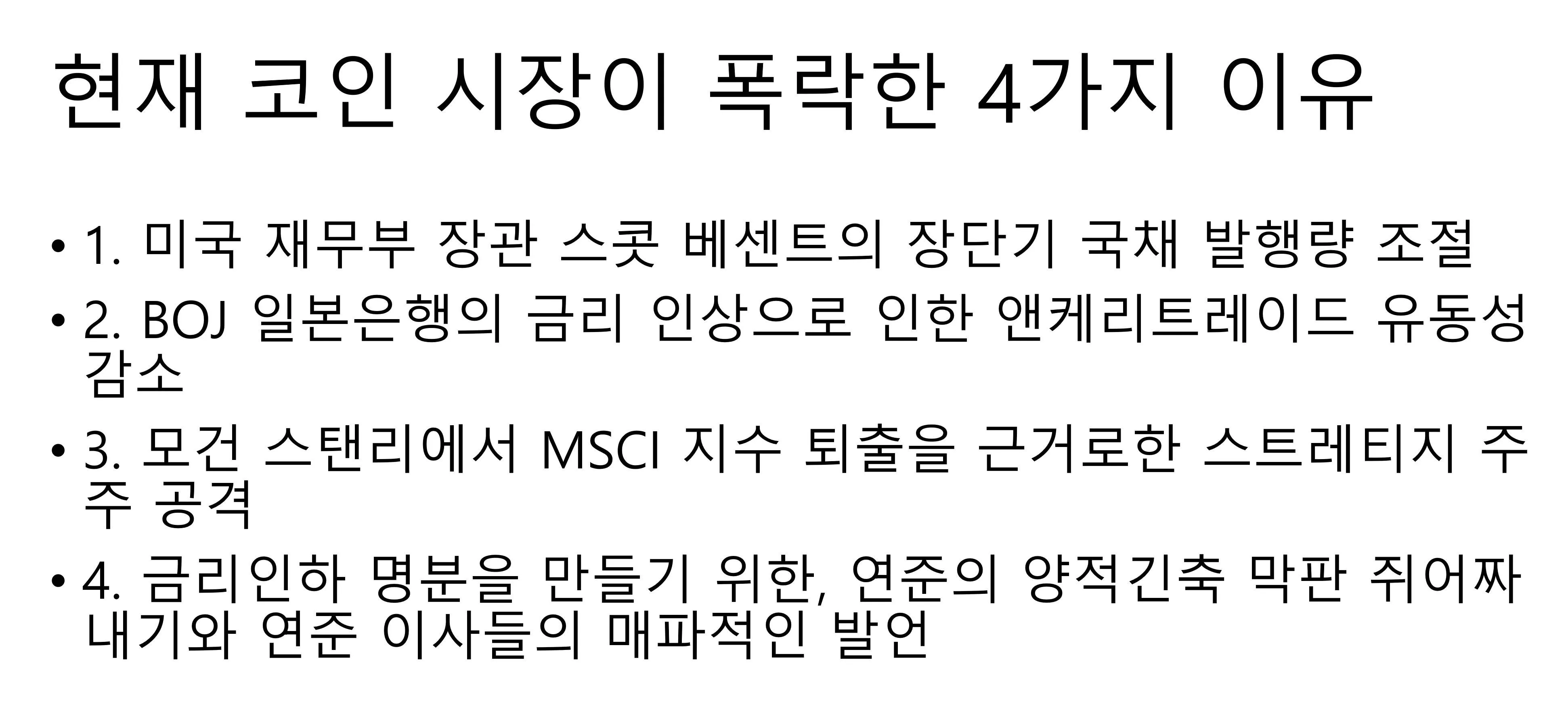 현재 코인 시장이 폭락한 4가지 이유를 가져왔습니다.