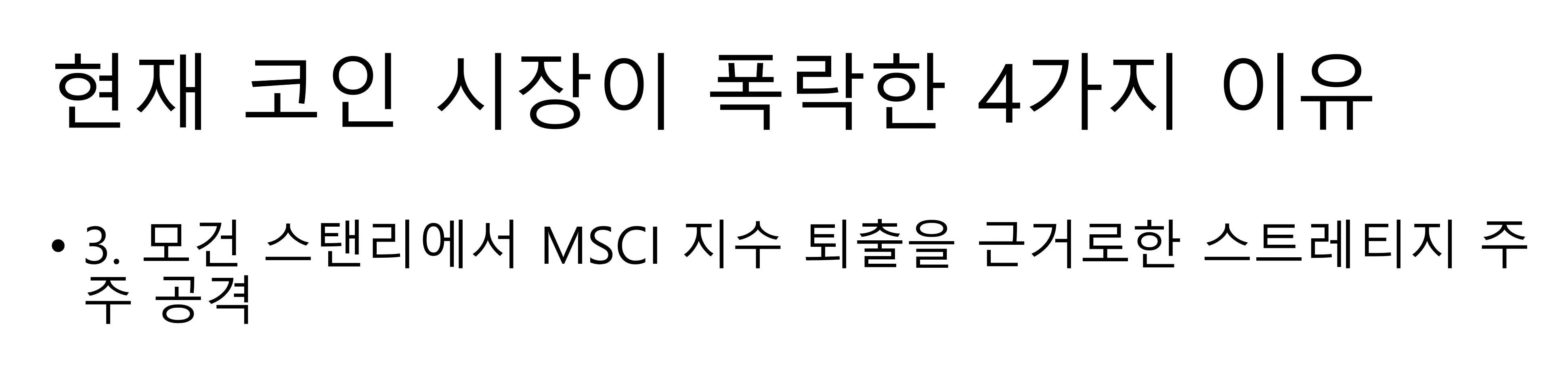 세번째는, 모건 스탠리에서 MSCI 지수 퇴출을 근거로한 스트레티지 주주 공격입니다.