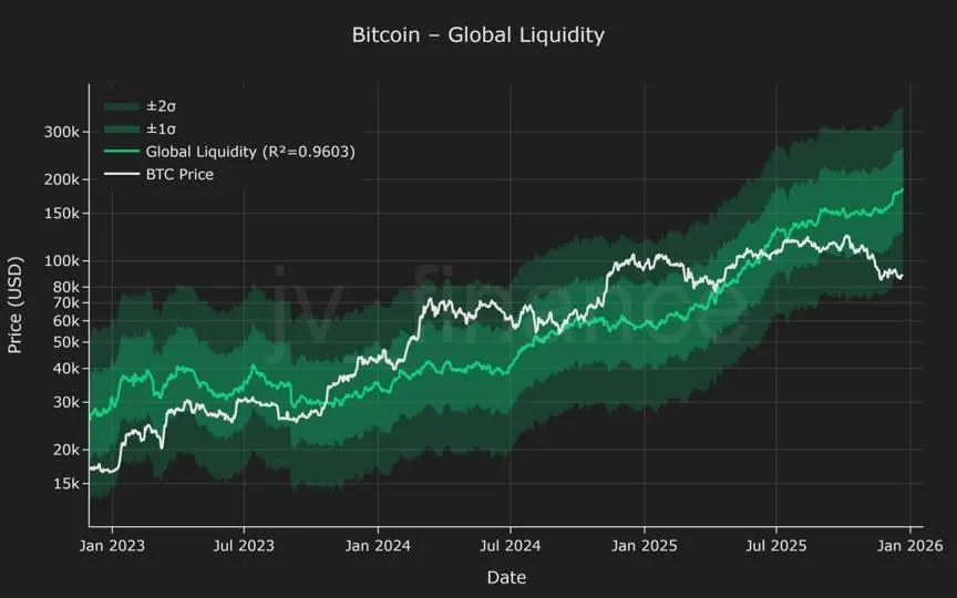 이 차트는 비트코인과 글로벌 유동성을 나타낸 차트입니다.