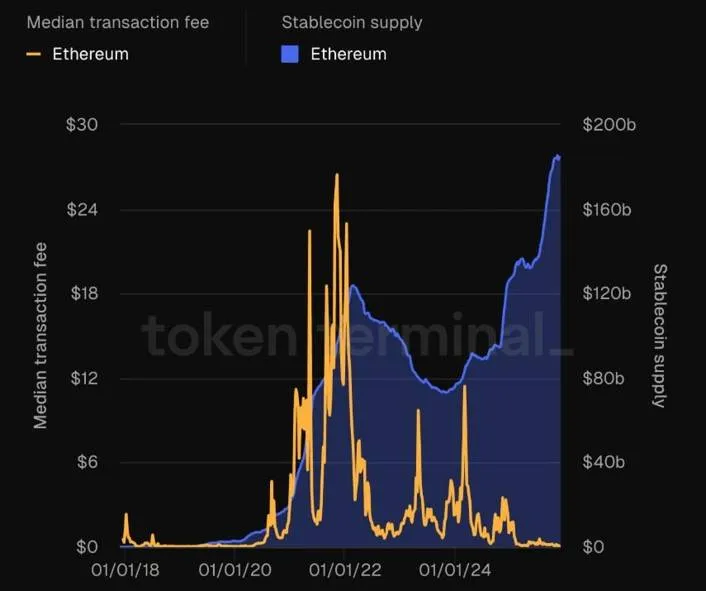스테이블 코인의 공급량이 최대치에 다다르면서 메인넷의 활동이 미친듯이 올라간 상황입니다.