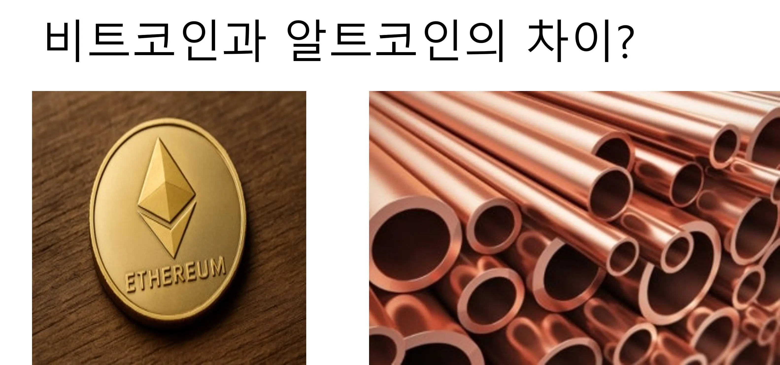 먼저 저는, 비트코인이 금이라면, 이더리움은 구리라고 생각합니다.