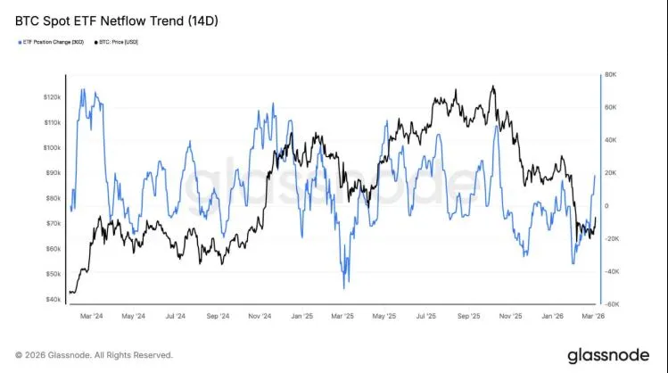 Fund flows for Bitcoin spot ETFs are gradually stabilizing after a period of sustained outflows, according to an analysis from Unfolded. Citing data from Glassnode, Unfolded noted that the 14-day net inflow trend for the ETFs is rebounding, signaling an easing of selling pressure. While institutional investor demand has not yet shown a distinct recovery, the analysis pointed to signs of re-accumulation as some funds begin to flow back into the products.