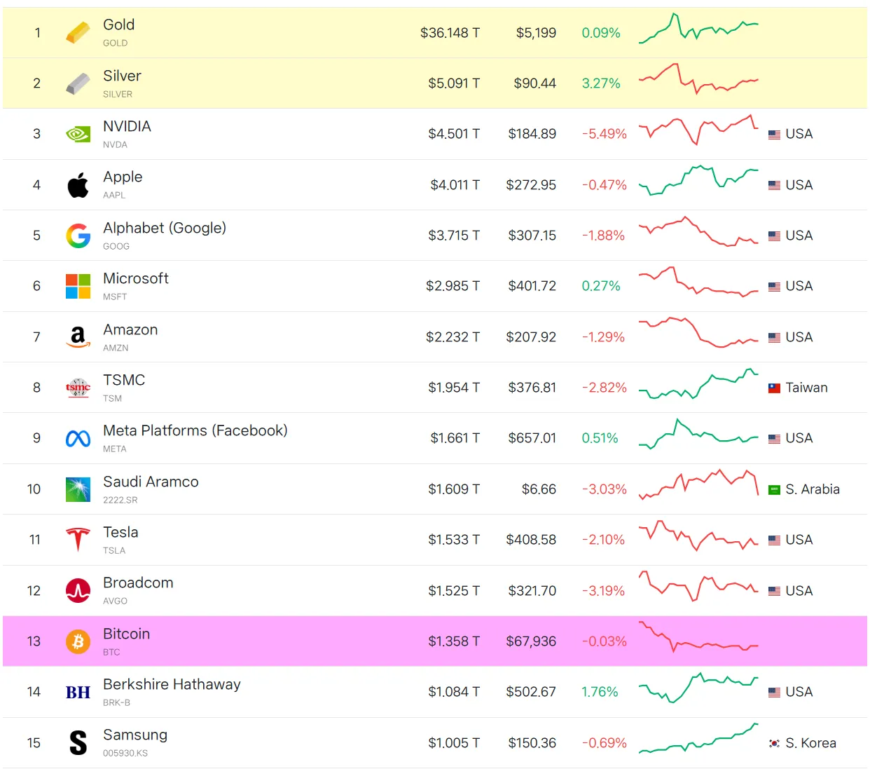 The market capitalization gap between Bitcoin and Samsung Electronics has narrowed to around $350 billion. According to data from CompaniesMarketCap, Bitcoin's current market cap is approximately $1.358 trillion, ranking it 13th overall, while Samsung Electronics is in 15th place with a market cap of about $1.005 trillion. Bitcoin's market cap reached $2.1 trillion in June last year, placing it fifth among global assets, but has since declined following a correction this year. In contrast, Samsung Electronics' stock has risen sharply since the end of last year, driven by factors such as rising memory semiconductor prices, after its market cap stood at around $270 billion at the end of 2024.
