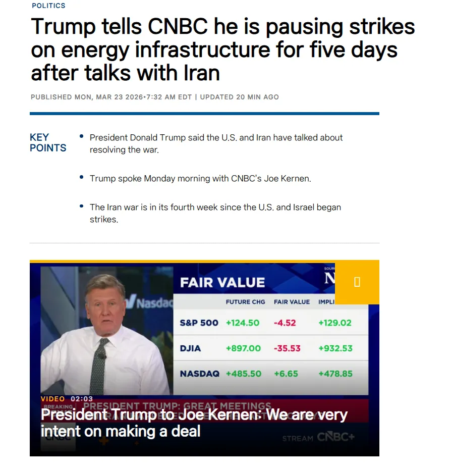 The Iranian Embassy in Afghanistan announced that the U.S. has withdrawn its plan to attack the country's energy infrastructure following a stern warning from Tehran. While Iran has not yet officially responded to an announcement from U.S. President Donald Trump, Iranian state television is reportedly broadcasting a banner declaring that the U.S. president backed down after the warning. Israel has also not yet issued a statement on the matter.