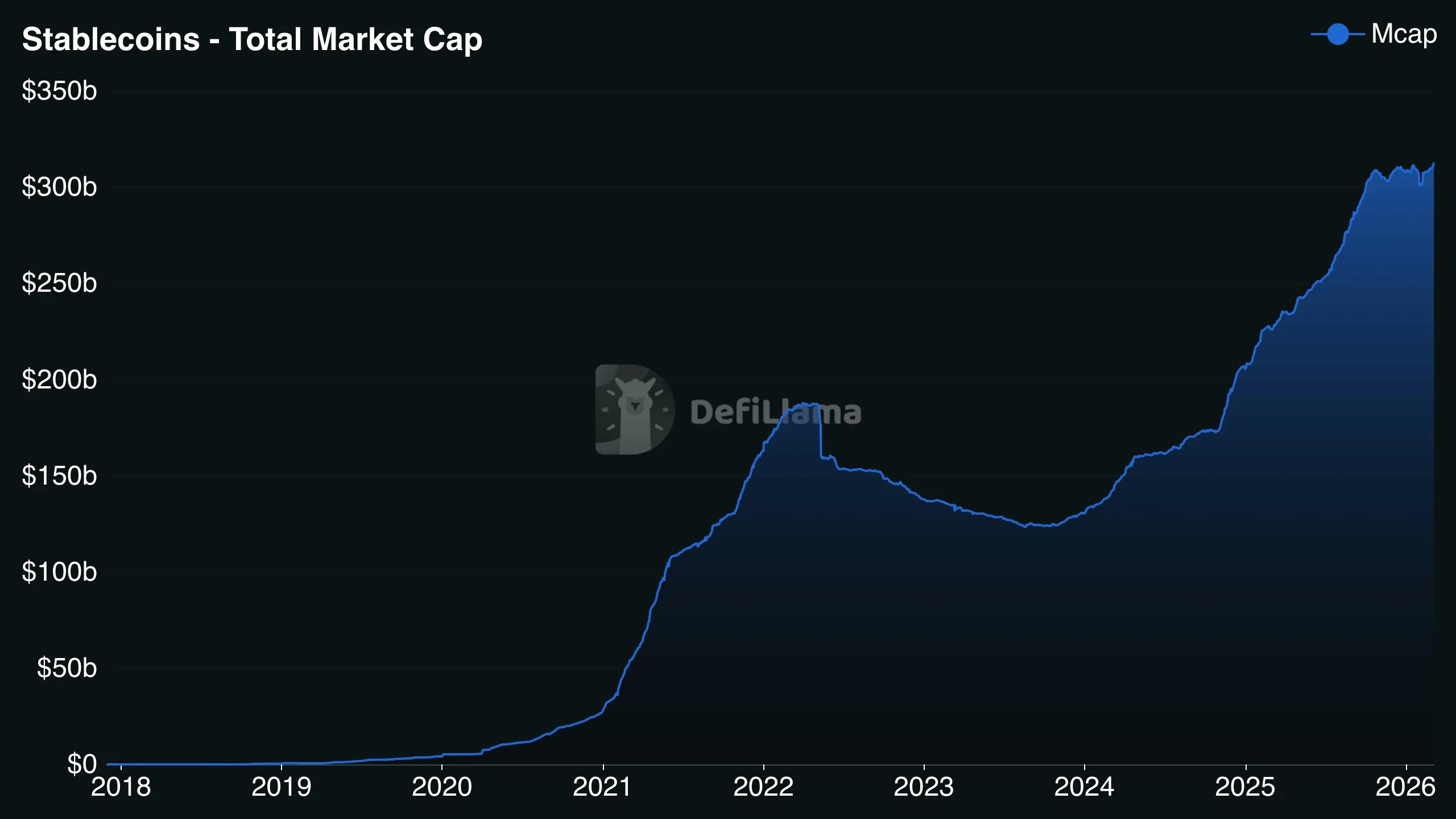 The total market capitalization of stablecoins has reached an all-time high of $312 billion, DeFi analyst Patrick Scott reported, citing data from DeFiLlama. He explained that this suggests an increase in capital flowing into DeFi, along with a rise in liquidity and on-chain assets.