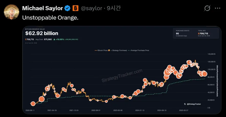 Strategy founder Michael Saylor posted a Saylor Tracker chart to his X account last night, hinting at a potential BTC purchase. He also added the comment "Unstoppable Orange." The phrase is interpreted as a reference to Bitcoin's symbolic color, emphasizing the asset's persistence and resilience. Saylor has previously followed a pattern of making similar posts before announcing additional BTC acquisitions.